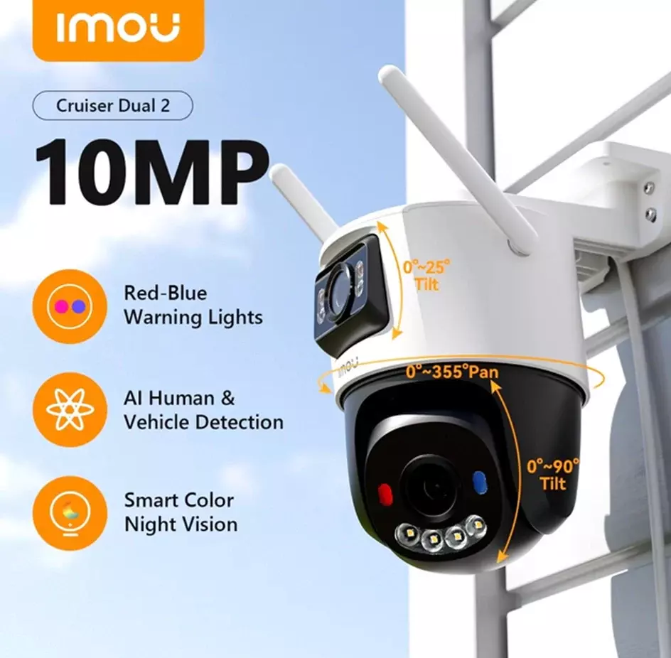 La Caméra Wifi Imou Cruiser Dual 2 10MP IPC-S7XEP-10M0WED est une solution de surveillance extérieure avancée conçue pour offrir une protection maximale aux habitations modernes, villas, commerces et espaces professionnels. Grâce à sa technologie à double objectif totalisant 10 mégapixels, elle permet une surveillance étendue avec une qualité d’image exceptionnelle.