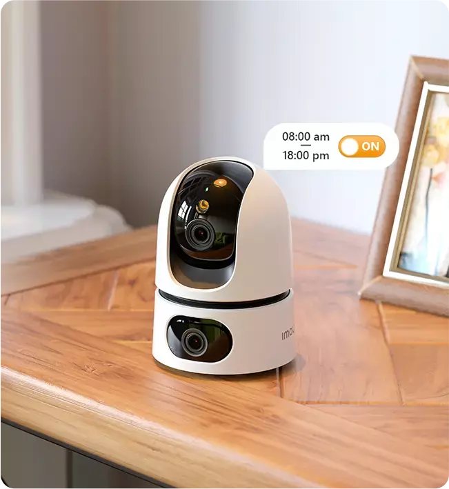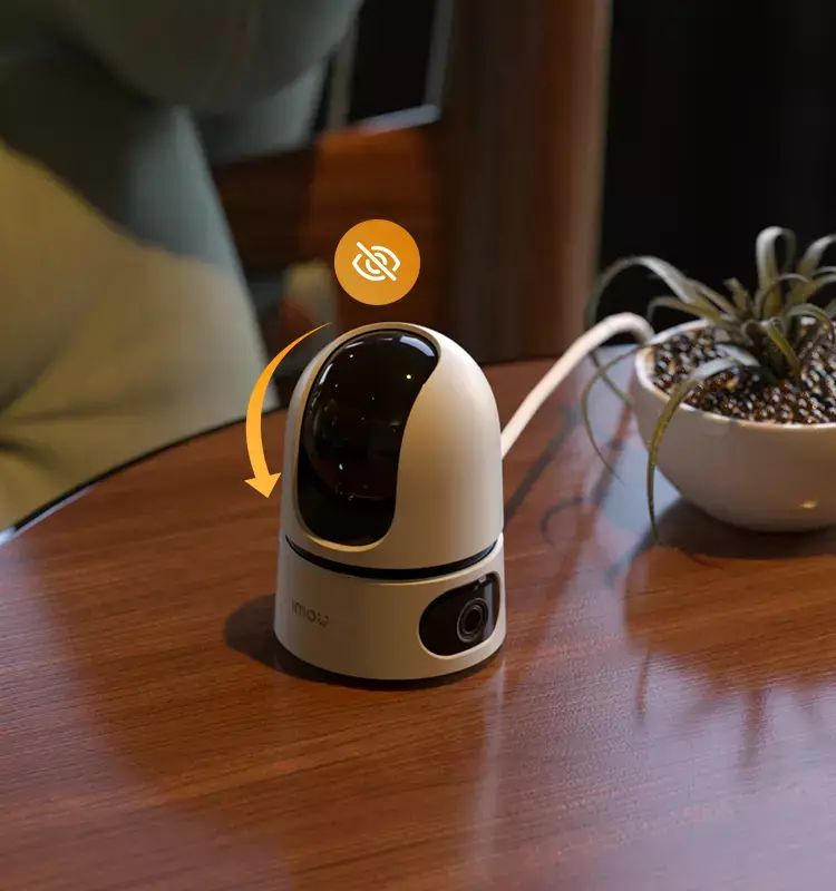 Grâce à son système Pan & Tilt motorisé, la caméra assure une rotation horizontale étendue et une inclinaison verticale fluide. Associée au double objectif, cette fonctionnalité permet une surveillance quasi complète de la pièce sans angles morts.
