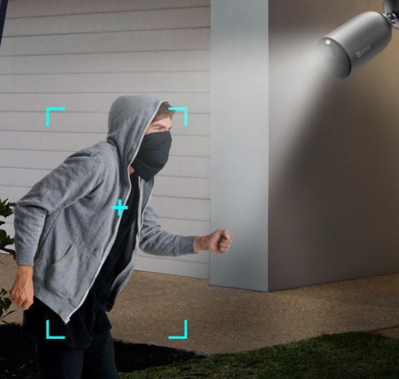 Grâce à l’intelligence artificielle intégrée, la caméra distingue les mouvements humains des autres mouvements (animaux, feuilles, etc.), réduisant ainsi les fausses alertes.