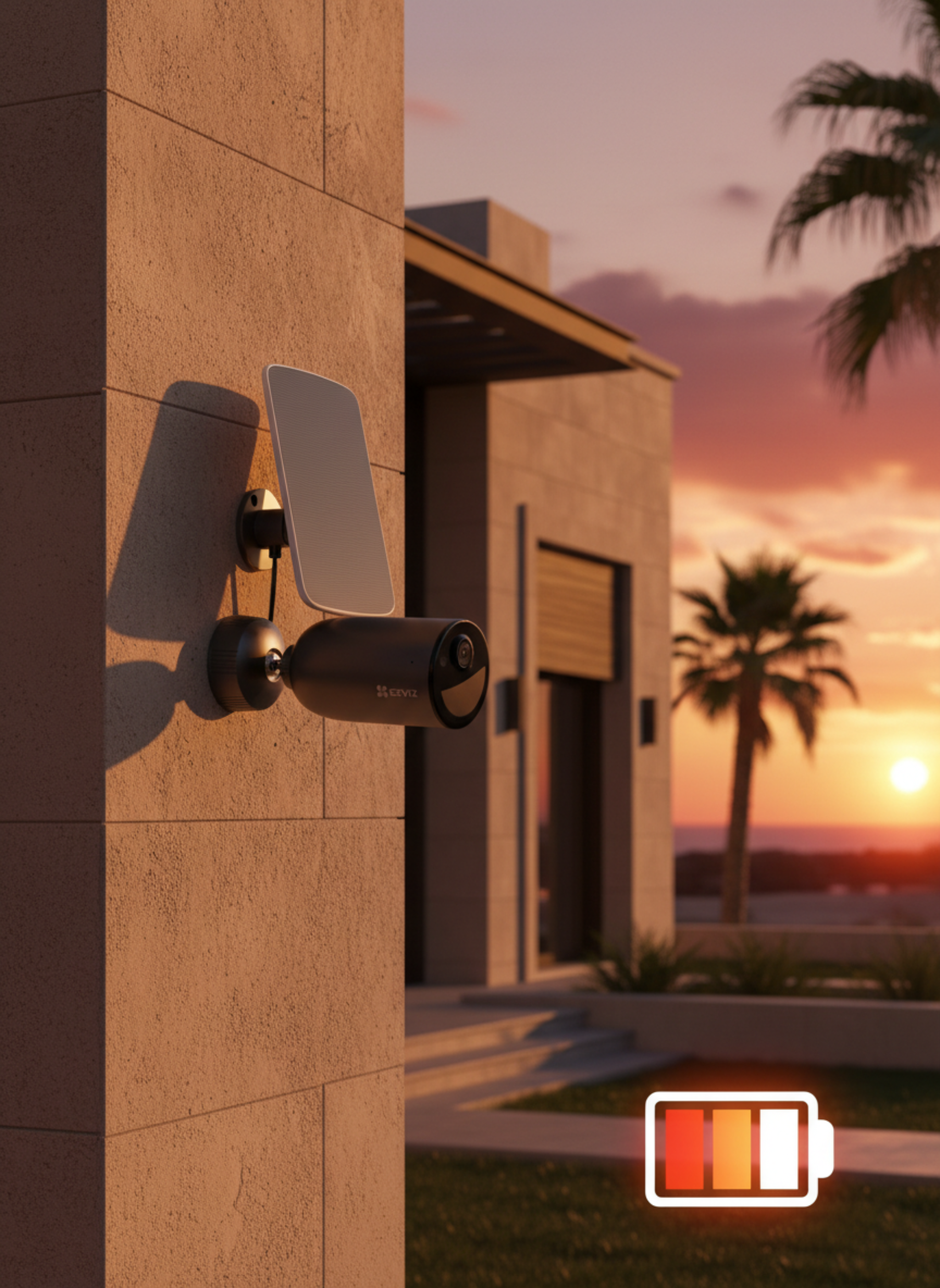 La caméra solaire EZVIZ CS-EB3 est une solution de surveillance extérieure 100 % sans fil, équipée d’une batterie rechargeable et compatible avec panneau solaire. Elle offre une vidéo haute définition, une vision nocturne en couleur et une détection intelligente des mouvements pour une sécurité optimale de votre maison ou commerce.