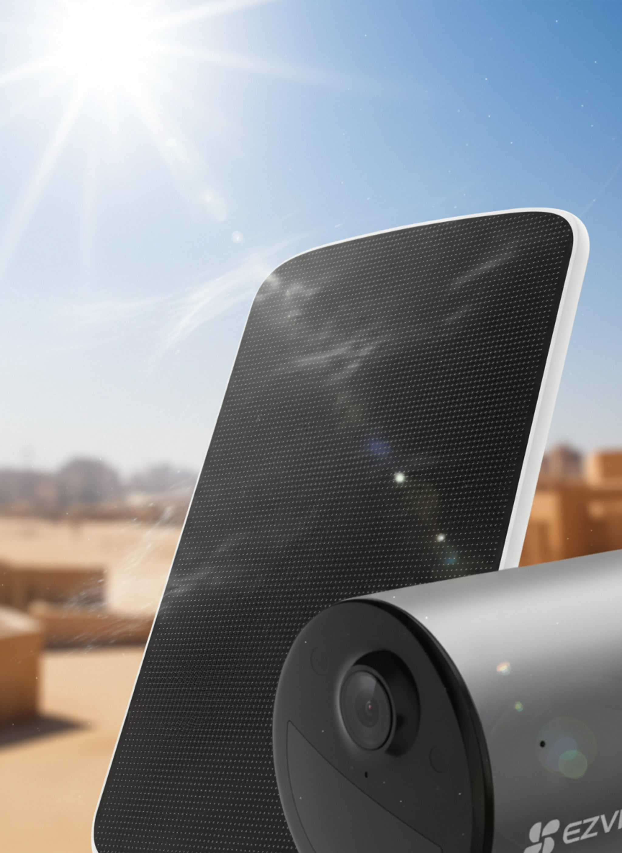 La caméra solaire EZVIZ CS-EB3 est une caméra de surveillance extérieure sans fil conçue pour offrir une protection continue et intelligente de votre habitation ou local professionnel. Grâce à sa batterie rechargeable haute capacité et sa compatibilité avec panneau solaire, elle fonctionne de manière autonome sans nécessiter de câblage complexe.