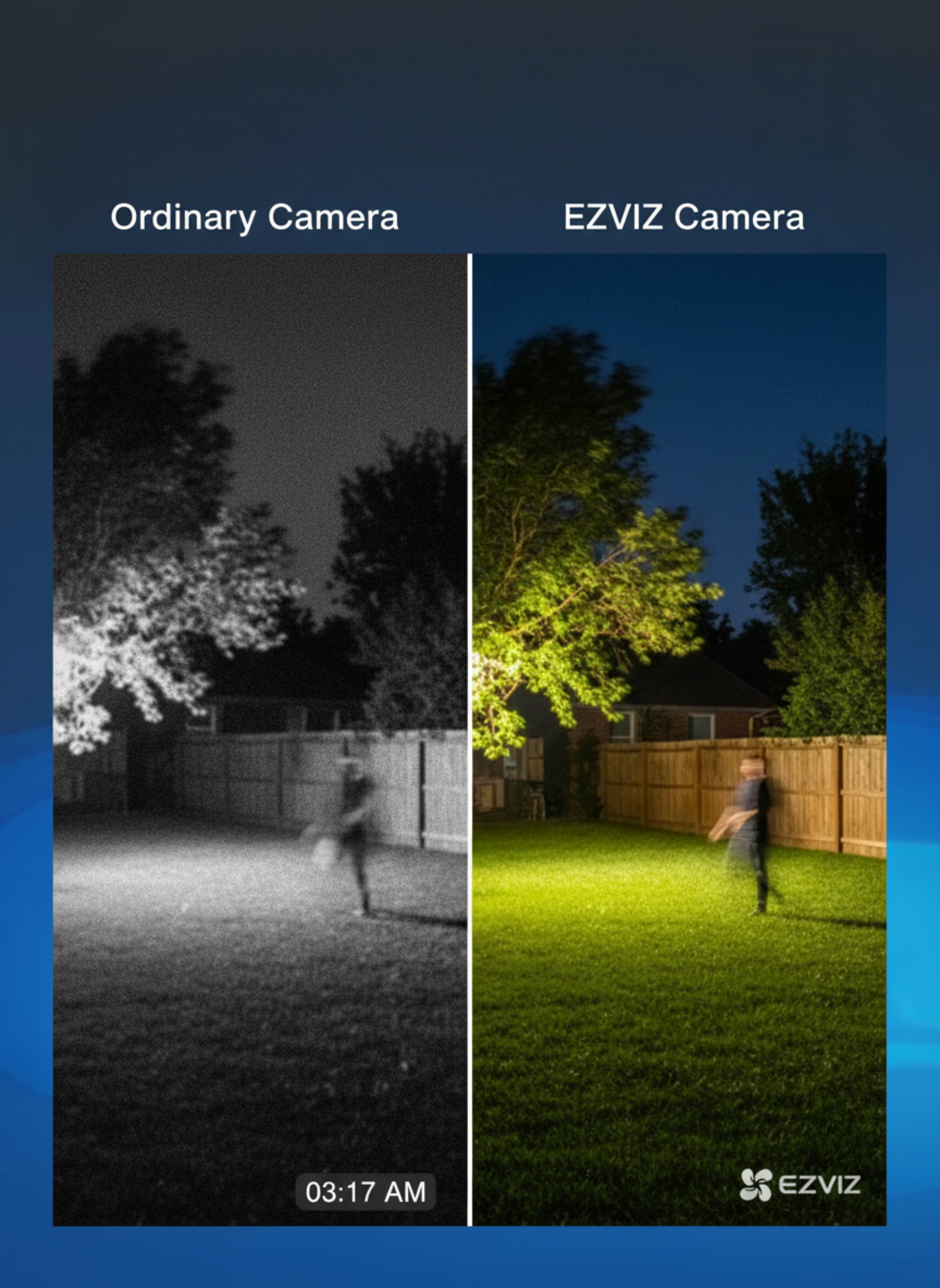 Contrairement aux caméras classiques en noir et blanc, la CS-EB3 offre une vision nocturne en couleur grâce à ses projecteurs intégrés, assurant une surveillance claire même dans l’obscurité.